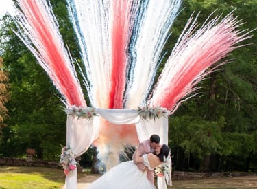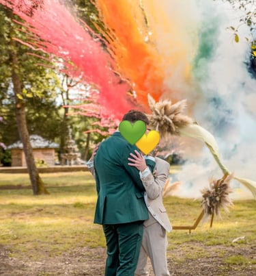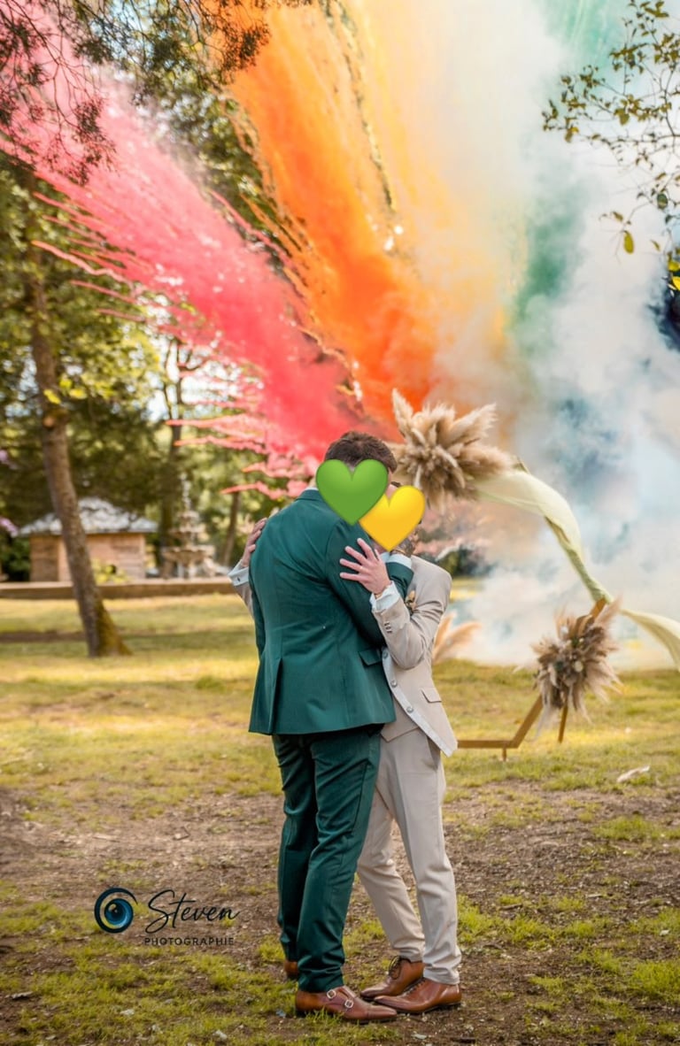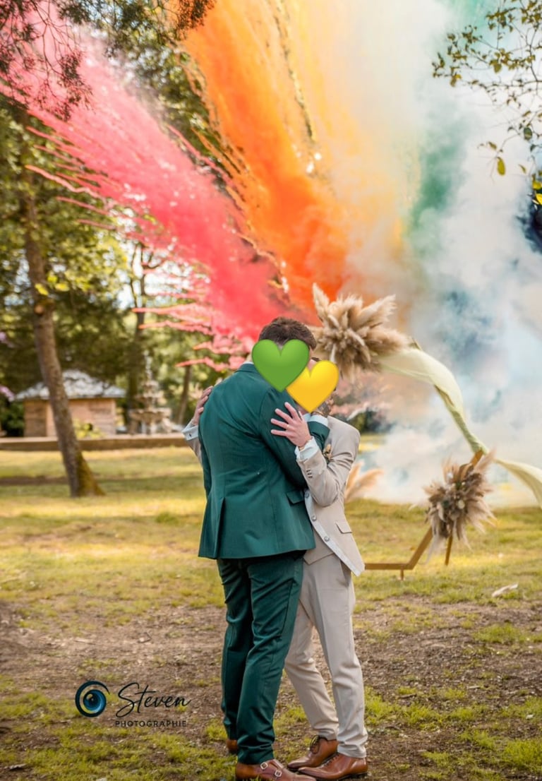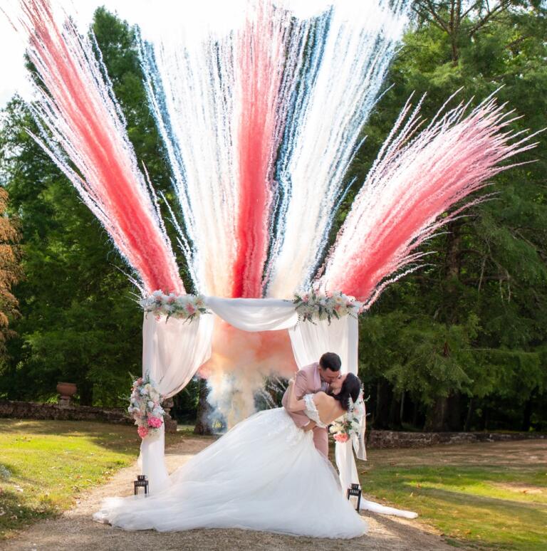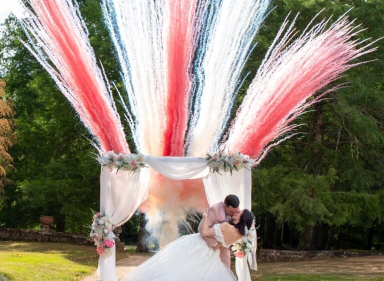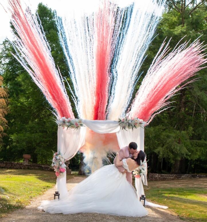 Bref, efficace et poétique, une salve ou une séquence de jet de fumée de couleur marquera une sortie d'église ou une fin de cérémonie laïque